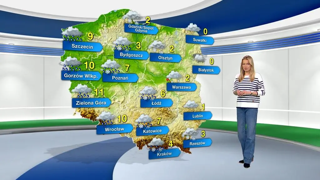 Temperatura maksymalna wyniesie od 0 stopni Celsjusza na Suwalszczyźnie do 10 st. C na Dolnym Śląsku i 11 st. C na Ziemi Lubuskiej. Z kierunku południowo-wschodniego powieje słaby i umiarkowany, miejscami w porywach osiągający prędkość 40-60 kilometrów na godzinę.