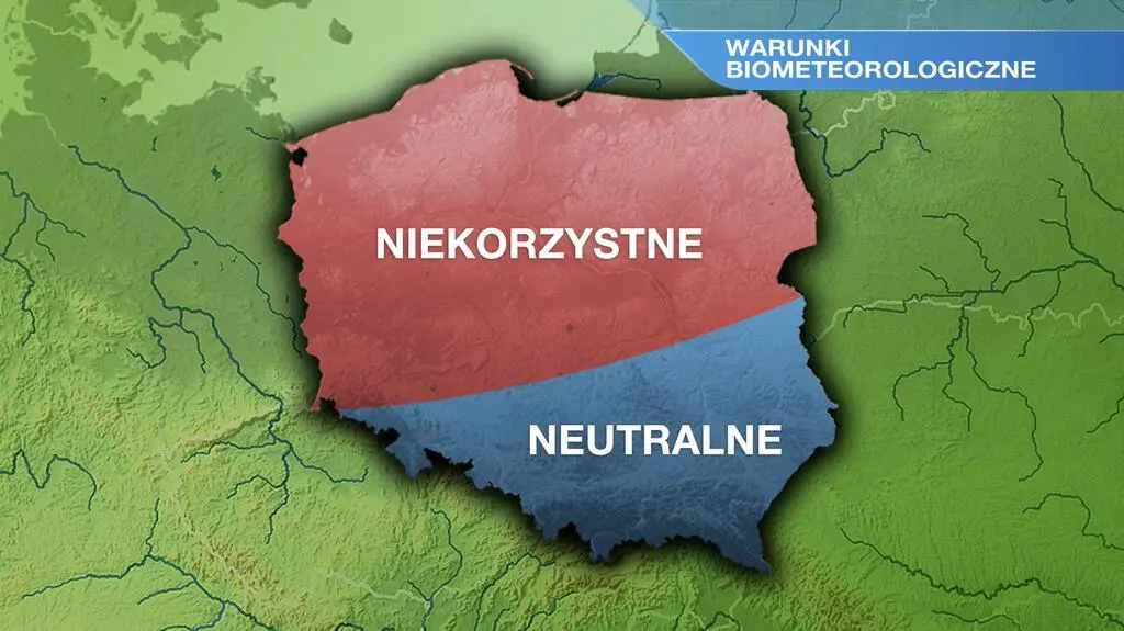 W całym kraju wilgotność powietrza sięgnie około 70-80 procent. Na ogół odczuwać będziemy chłód, jedynie na południowym wschodzie wystąpi komfort termiczny. W większości kraju biomet będzie niekorzystny, jedynie na południowym wschodzie neutralny.