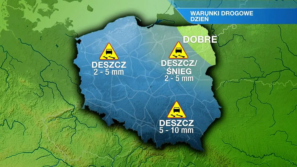 Piątek upłynie pod znakiem pochmurnej aury. Na zachodzie kraju prognozowane są przelotne opady deszczu o sumie 2-5 litrów wody na metr kwadratowy. Deszcz o charakterze ciągłym wystąpi na wschodzie i w centrum, spadnie go tam 5-10 l/mkw. Wieczorem opady będą przechodzić w deszcz ze śniegiem, a w nocy w sam śnieg.