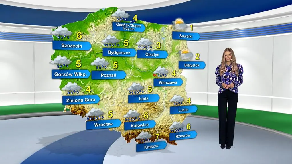 Temperatura maksymalna wyniesie od 1-2 stopni Celsjusza na Suwalszczyźnie do 6-7 st. C na Podkarpaciu. Powieje słaby i umiarkowany, zmienny wiatr. Na zachodzie północno-zachodni, który okaże się umiarkowany, w porywach dość silny, zaś w centrum słaby i zmienny, na wschodzie umiarkowany i południowo-wschodni.