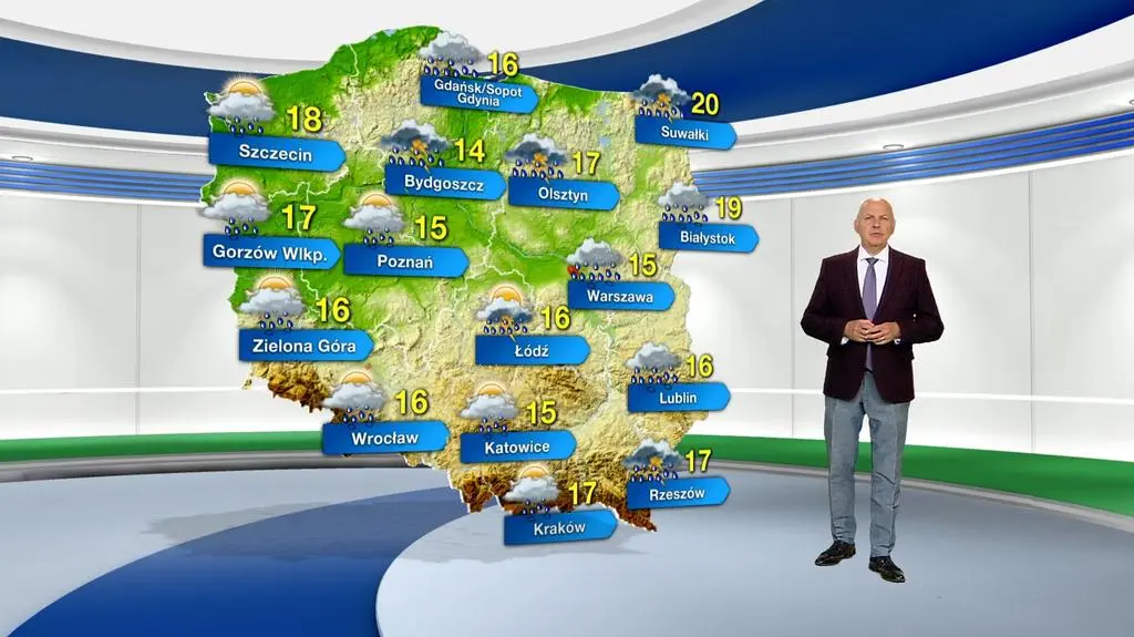 Temperatura maksymalna wyniesie od 14 stopni Celsjusza na Kujawach, przez 16 st. C w centrum kraju, do 20 st. C na Suwalszczyźnie. Wiatr będzie południowo-wschodni i południowy, tylko na zachodzie okaże się północno-zachodni. Powieje słabo i umiarkowanie, a na północy i wschodzie dość silnie, w porywach rozpędzając się do 60-70 kilometrów na godzinę.