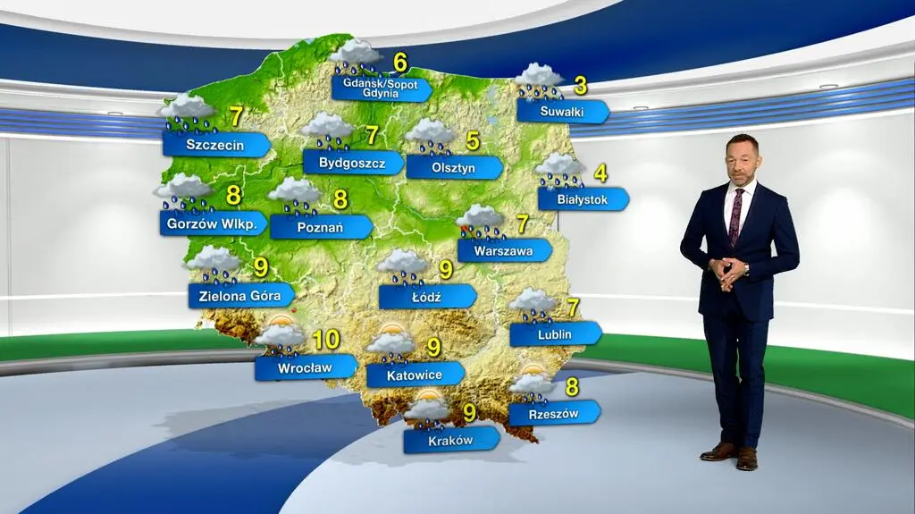 Temperatura maksymalna wyniesie od 3 stopni Celsjusza na Suwalszczyźnie do 10 st. C na Dolnym Śląsku. Z kierunku południowo-zachodniego i zachodniego powieje przeważnie umiarkowany, okresami silniejszy wiatr. W porywach osiągnie do 40-60 kilometrów na godzinę.