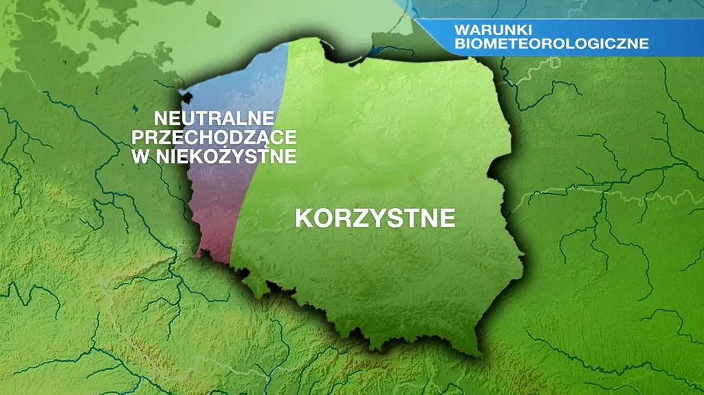Wilgotność powietrza w znaczącej większości Polski będzie utrzymywać się na podobnym poziomie wynoszącym 60 procent. Więcej wyniesie ona w centralnej, północnej i południowej Polsce. Warunki biometeorologiczne będą przeważnie korzystne, jedynie w północno-zachodniej i zachodniej części kraju w drugiej części dnia będą one neutralne, ale przechodzące w niekorzystne.