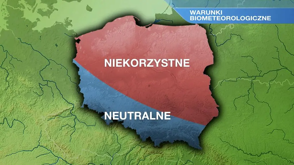 Wilgotność powietrza sięgnie od 60 do 90 procent. Na południu i zachodzie odczuwalny będzie komfort termiczny, a mieszkańcy pozostałych regionów odbiorą temperaturę jako chłodną. Warunki biometeorologiczne w większości kraju okażą się niekorzystne.