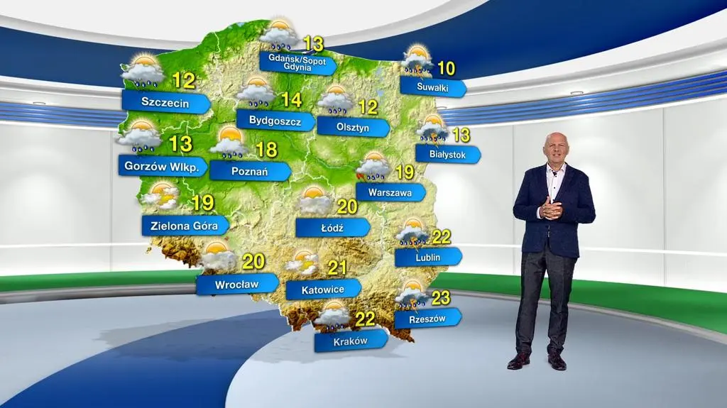 Temperatura maksymalna wyniesie od 10 stopni Celsjusza na Suwalszczyźnie do 23 st. C na Podkarpaciu. Z kierunków południowych powieje słaby i umiarkowany wiatr, jedynie na Wybrzeżu miejscami silniejszy.