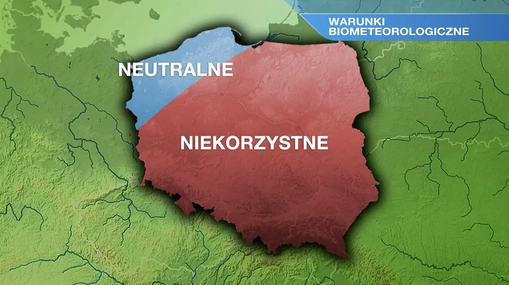 Wilgotność powietrza w ciągu dnia będzie najwyższa na południu i w centrum kraju, przekraczając 90 procent. Mieszkańcy przeważającej części Polski odczują pogodę jako chłodną i wilgotną. Warunki biometeorologiczne w większości kraju okażą się niekorzystne.