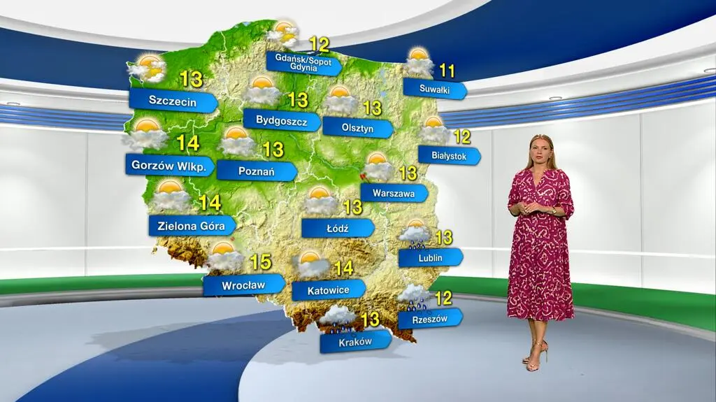 W południowo-wschodniej części kraju środa upłynie pod znakiem chmur i opadów deszczu rzędu 5 litrów wody na metr kwadratowy. W Karpatach spadnie więcej deszczu, do 10-15 l/mkw. W pozostałej części Polski możemy spodziewać się zmiennego zachmurzenia i braku opadów. Temperatura maksymalna sięgnie od 11 stopni Celsjusza na Suwalszczyźnie, poprzez 13 st. C w centralnej Polsce, do 15 st. C na Dolnym Śląsku. Z kierunków północnych powieje słaby i umiarkowany wiatr.
