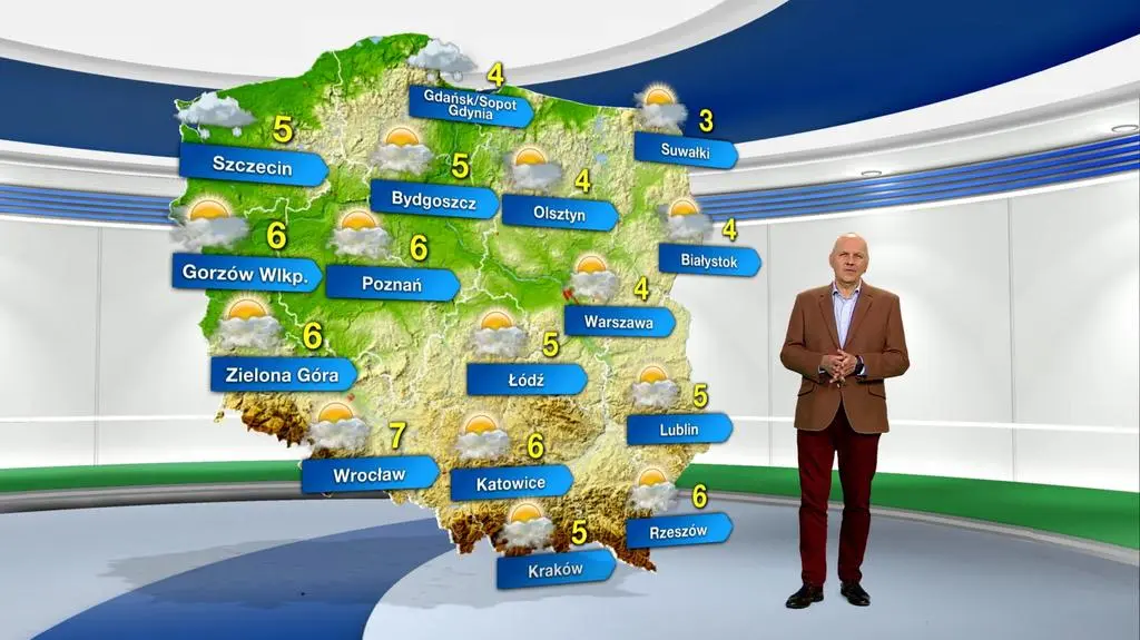 Środa upłynie pod znakiem zmiennego zachmurzenia. Na Pomorzu, Warmii, Ziemi Lubuskiej i Dolnym Śląsku prognozowane są przelotne opady śniegu do 1-2 centymetrów. Na termometrach zobaczymy maksymalnie od 3 stopni Celsjusza na Suwalszczyźnie do 7 st. C na Dolnym Śląsku. Północny wiatr powieje słabo i umiarkowanie.