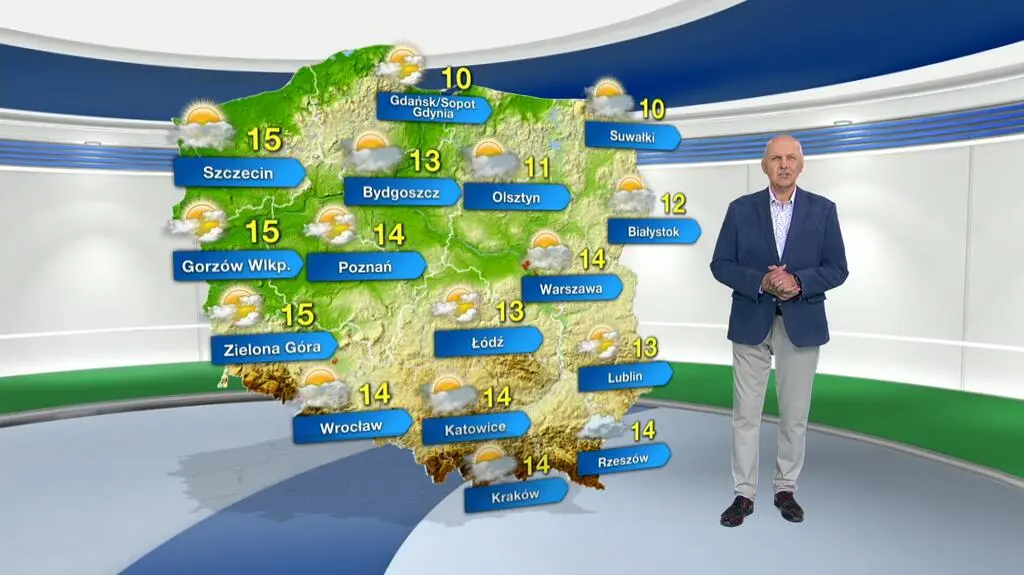 Na niebie pojawi się zachmurzenie kłębiaste, umiarkowane i duże. Padać może dziś lokalnie na południu Polski (do 0,5 litrów deszczu na metr kwadratowy). Na termometrach zobaczymy od 10-11 st. C na północnym wschodzie, przez 13-14 st. C w centrum kraju, do 14-15 st. C lokalnie na południu i zachodzie. Powieje północny, umiarkowany, w porywach dość silny wiatr.