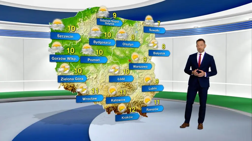 Temperatura maksymalna wyniesie od 7-8 stopni Celsjusza w rejonie Suwałk i Białegostoku, przez 9-10 st. C na zachodzie i w centrum, do 11-12 st. C na południu kraju. Południowy wiatr będzie słaby i umiarkowany. Miejscami na południu kraju, głównie w rejonie Przedgórza Sudeckiego, w porywach osiągnie prędkość do 30-40 kilometrów na godzinę.