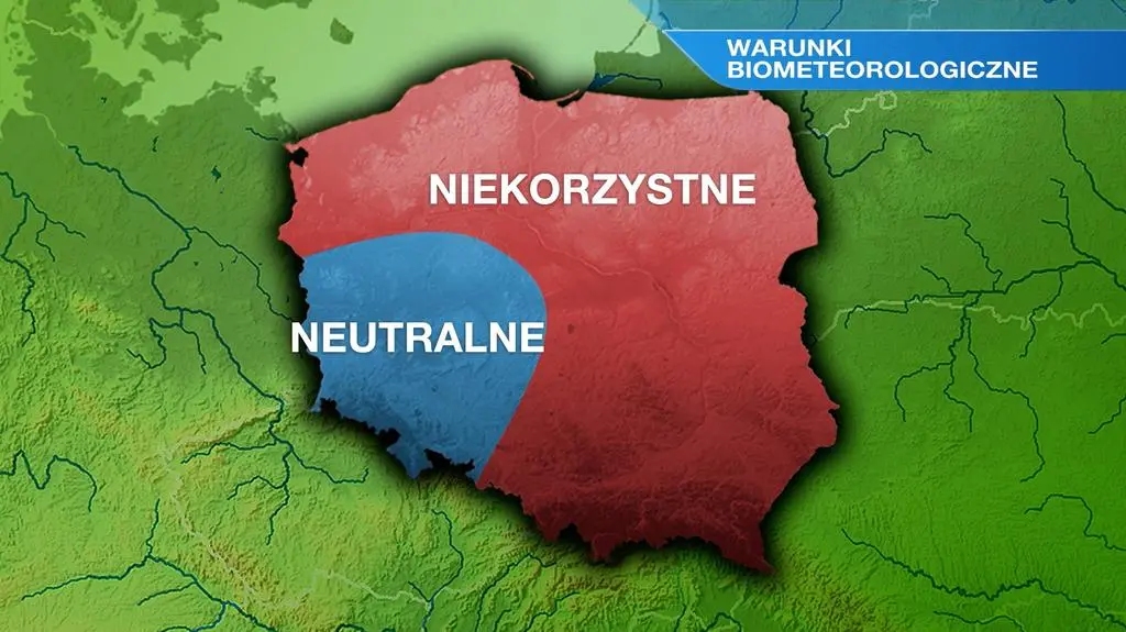 W ciągu dnia wilgotność powietrza w Polsce wyniesie 70-80 procent. Na terenie całego kraju odczujemy chłód. Warunki biometeorologiczne okażą się niekorzystne, jedynie na południowym zachodzie aura nie będzie miała wpływu na naszą kondycję i samopoczucie.