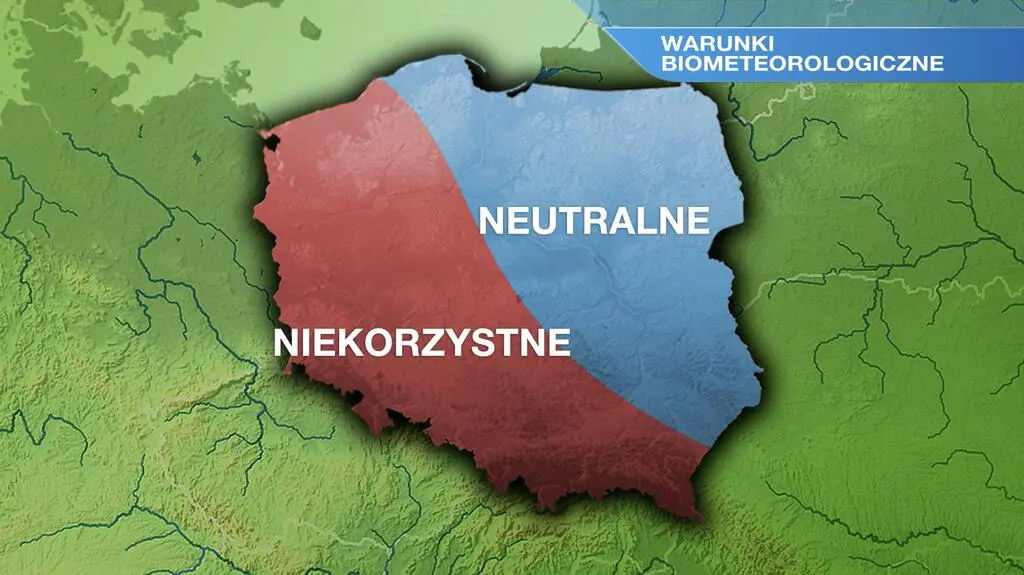 Wilgotność powietrza w ciągu dnia wyniesie 80-90 procent. W północno-wschodniej oraz centralnej Polsce, a także na wschodzie kraju warunki biometeorologiczne będą neutralne, w pozostałych regionach niekorzystne.