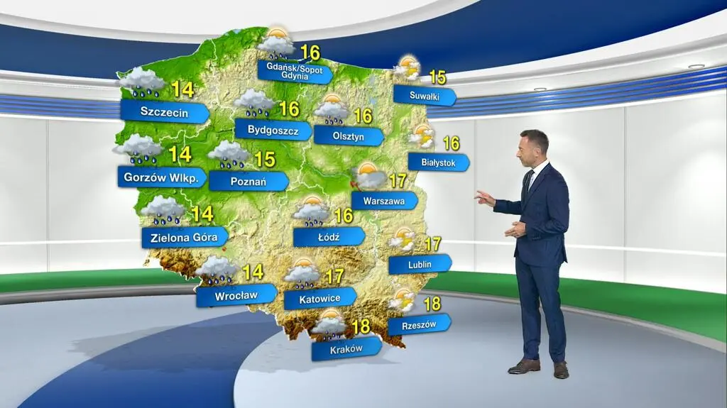 Termometry pokażą od 14 stopni Celsjusza na zachodzie, przez 16 st. C w centrum kraju, do 18 st. C w Małopolsce i na Podkarpaciu. Powieje słaby i umiarkowany wiatr z kierunków południowych, skręcający na zachód.