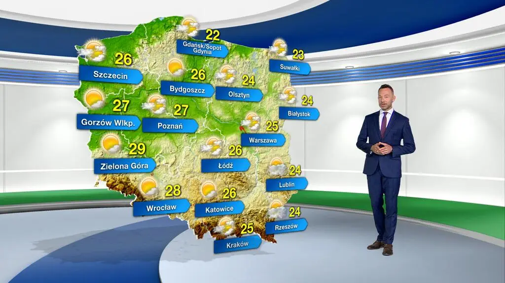 Czwartek w całym kraju upłynie pod znakiem pogodnej aury. Temperatura maksymalna wyniesie od 22 st. C na Kaszubach, przez 26 st. C w centrum kraju, do 29 st. C na Ziemi Lubuskiej. Wiatr będzie północny i wschodni, słaby.