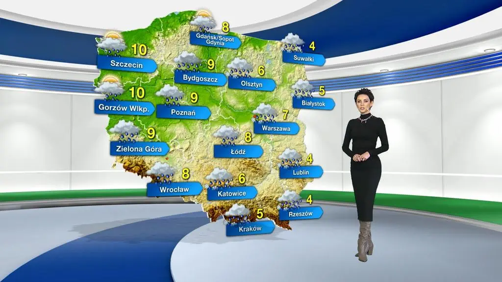 W dzień zachmurzenie będzie duże z niewielkimi przejaśnieniami. Przechodzący przez Polskę układ frontów atmosferycznych w południowo-wschodniej części kraju przyniesie opady śniegu przechodzące w deszcz ze śniegiem i deszcz, który lokalnie będzie zamarzać i powodować gołoledź. W pozostałych regionach wystąpią opady deszczu, miejscami obfite, do 10 litrów na metr kwadratowy.