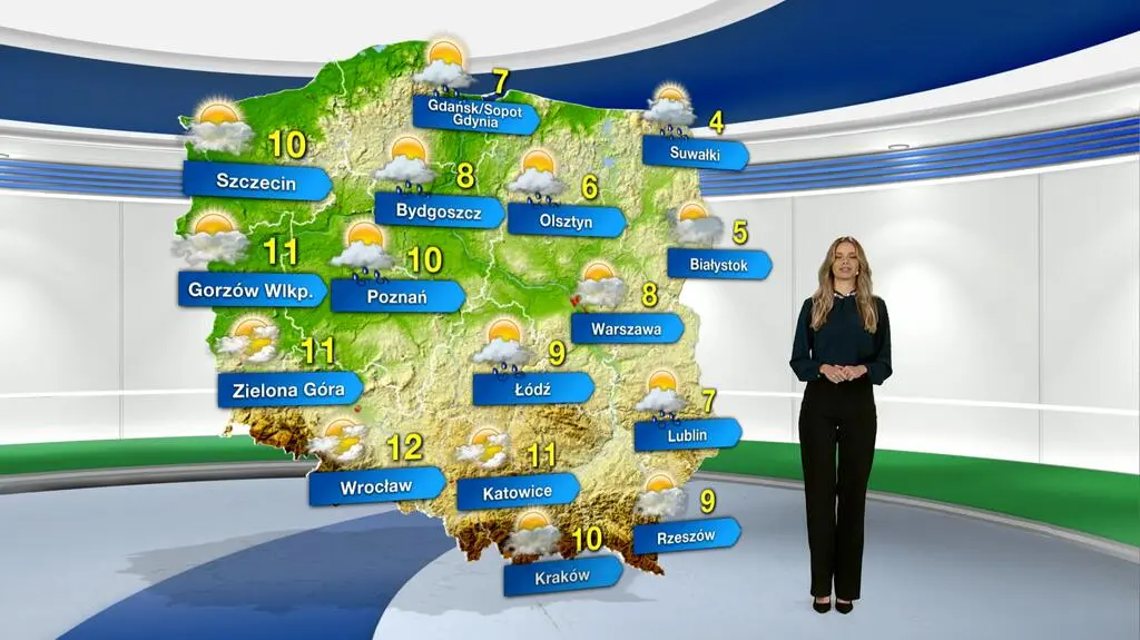 Dzień też upłynie ze zmiennym zachmurzeniem. Lokalnie słabo i przelotnie popada deszcz. Na termometrach zobaczymy maksymalnie od 4 st. C na Podlasiu do 12 st. C na Dolnym Śląsku. Południowo-zachodni wiatr powieje słabo i umiarkowanie, okresami okaże się silniejszy, w porywach do 40-60 km/h.