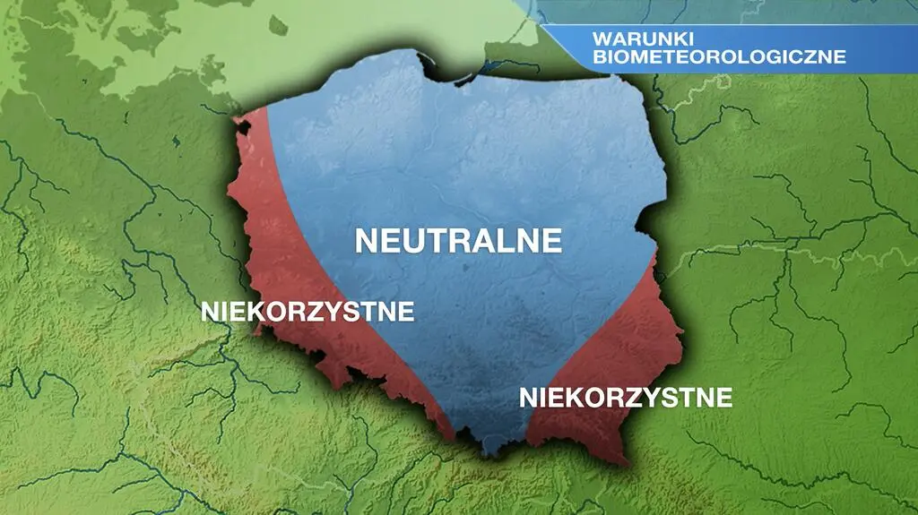 Wilgotność powietrza w czwartek wyniesie 60 procent na wschodzie. Będzie rosnąć w kierunku zachodnim, osiągając około 80 procent. Na przeważającym obszarze kraju odczujemy komfort termiczny, tylko na krańcach wschodnich - chłód. Aura przeważnie nie będzie wpływać na nasze samopoczucie.