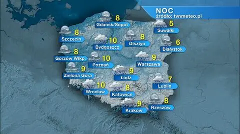 W nocy zachmurzenie będzie zmienne. Słabe przelotne opady deszczu możliwe są na Pomorzu, Warmii i Mazurach. Temperatura minimalna wyniesie od 3 stopni Celsjusza na Suwalszczyźnie do 6 st. C na Nizinie Szczecińskiej . Wiatr będzie słaby, w strefie brzegowej okresami umiarkowany, powieje ze zmiennych kierunków.
