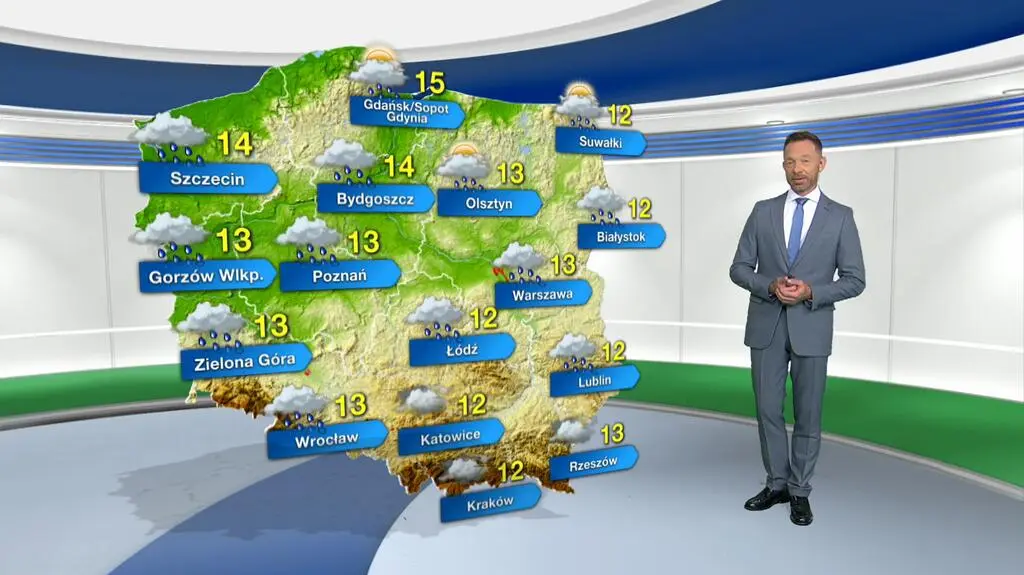 Na przeważającym obszarze kraju w niedzielę będzie pochmurno. Lokalnie spadnie mżawka, a na północy oraz wieczorem również w centrum kraju wystąpią słabe opadami przelotnego deszczu. Rozpogodzenia spodziewane są jedynie na północy w godzinach popołudniowych. Na termometrach zobaczymy przeważnie 11-13 st. C jedynie na Pomorzu lokalnie 14-15 st. C. Powieje północno-zachodni, umiarkowany i dość silny wiatr, porywisty, z porywami do 40-50 kilometrów na godzinę na północnym wschodzie Polski.