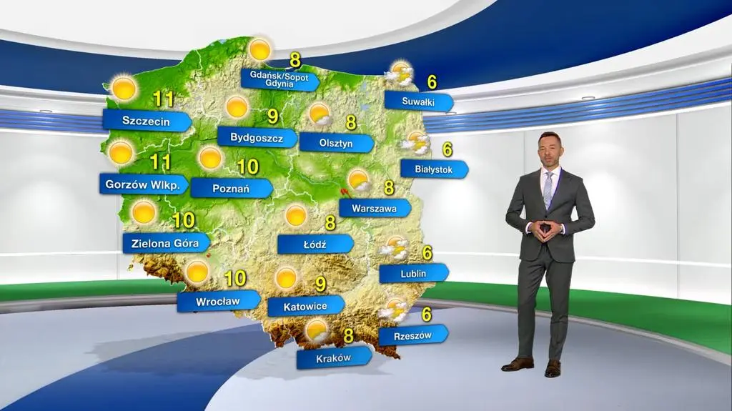 Dzień upłynie pod znakiem słonecznej aury. Również we wschodnich regionach niebo może się nieco zachmurzyć. Na termometrach zobaczymy maksymalnie od 6 st. C na wschodzie, przez 8 st. C w centrum kraju, do 11 st. C na północnym zachodzie. Będzie wiać słaby i umiarkowany, południowo-wschodni i wschodni wiatr.
