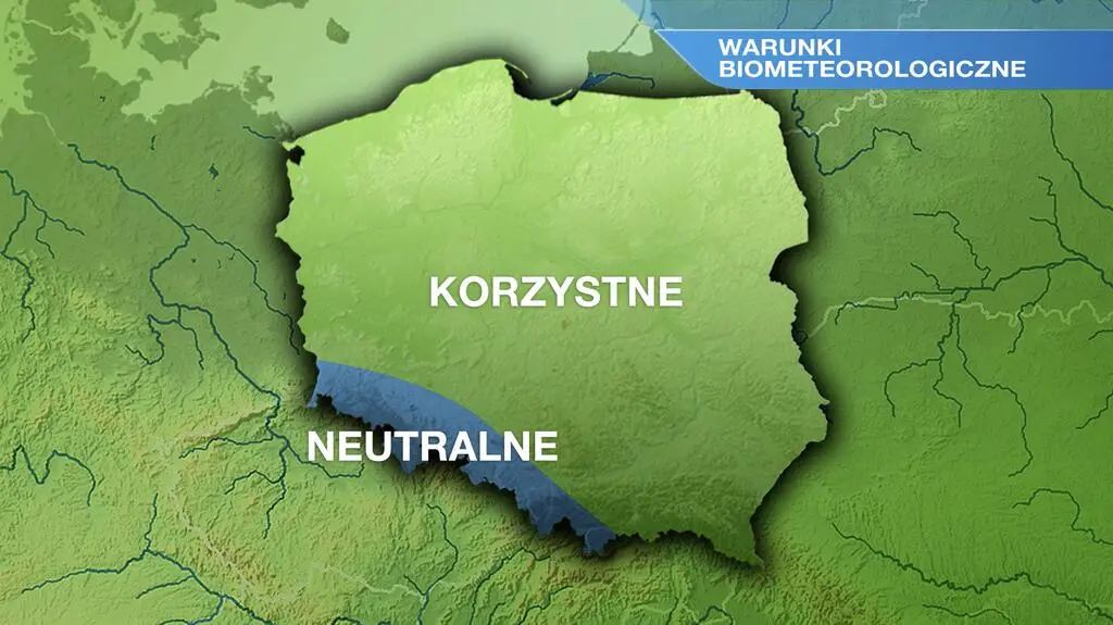 Wilgotność powietrza w niedzielę na obszarze całej Polski znajdzie się na poziomie 40-60 procent. Mieszkańcy wszystkich regionów odczują ciepło. Warunki biometeorologiczne niemal wszędzie okażą się korzystne, na krańcach południowo-zachodnich aura nie będzie wpływać na samopoczucie.