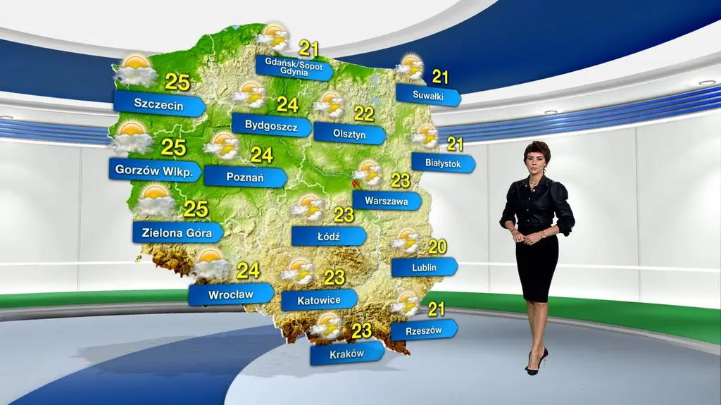 Dzień w większości kraju upłynie z pogodną, a w niektórych miejscach będzie słonecznie. W drugiej części dnia na krańcach południowych, w górach i obszarach podgórskich możliwe są burze z opadami deszczu rzędu 10-20 litrów wody na metr kwadratowy. Na termometrach zobaczymy maksymalnie 21 st. C na Suwalszczyźnie, przez 23 st. C w centrum kraju, do 25 st. C na zachodzie. Z kierunku wschodniego i północno-wschodniego powieje umiarkowany, w porywach dość silny wiatr.