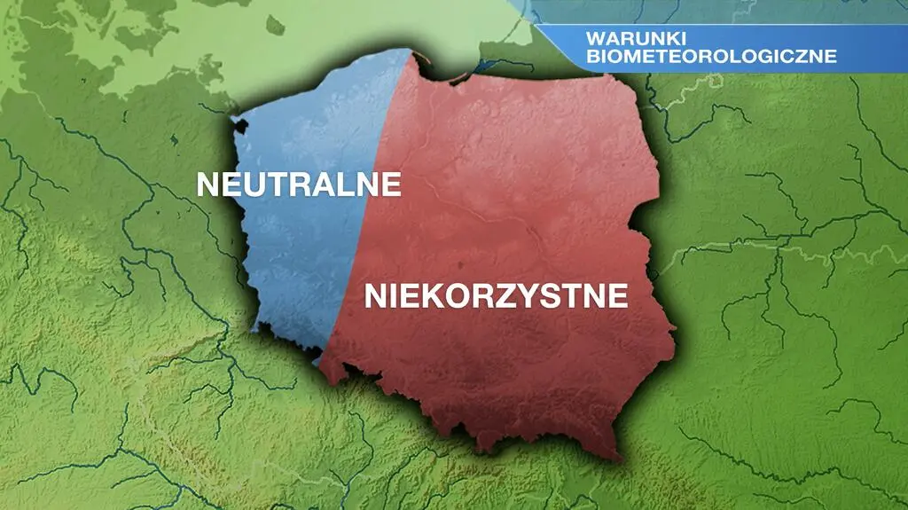 Wilgotność powietrza w ciągu dnia sięgnie od 70 do ponad 90 procent, przy czym najwyższa będzie w strefie frontu atmosferycznego. Gorąco odczują mieszkańcy Polski południowo-wschodniej, a w pozostałych miejscach będzie odczuwalne ciepło. Warunki biometeorologiczne w większości kraju okażą się niekorzystne, tylko w województwach zachodnich aura neutralnie wpłynie na samopoczucie.