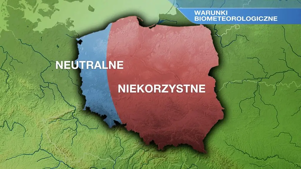Wilgotność powietrza w niedzielę znajdzie się na poziomie 70-90 procent. Mieszkańcy całej Polski odczują chłód. Warunki biometeorologiczne w większości regionów okażą się niekorzystne, aura nie będzie miała wpływu w zachodnich województwach.