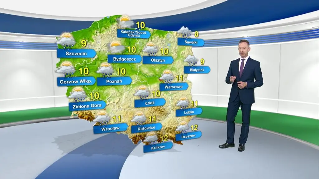 Na początku nocy na wschodzie i w centrum kraju będzie pogodnie. Od zachodu nastąpi wzrost zachmurzenia do całkowitego ze słabymi i przelotnymi opadami deszczu około 1-2 litrów na metr kwadratowy, na północy i zachodzie do 5 l/mkw. Temperatura wyniesie od 3 stopni Celsjusza na północnym wschodzie, przez 7 st. C w centrum, do 8 st. C na zachodzie. Powieje południowo-zachodni wiatr skręcający na zachodni, przeważnie umiarkowany, na zachodzie w drugiej części nocy dość silny.