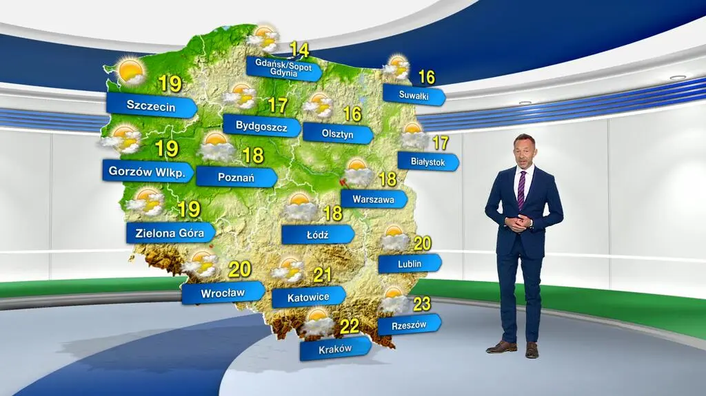 Na termometrach zobaczymy maksymalnie od 14 st. C w Trójmieście i 16 st. C na Suwalszczyźnie oraz Warmii i Mazurach, przez 18 st. C w centralnej Polsce, do 23 st. C na Podkarpaciu. Powieje umiarkowany, północny wiatr, na północy i wschodzie w porywach rozpędzi się do 40-50 kilometrów na godzinę.