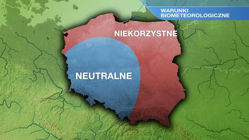 Wilgotność powietrza w ciągu dnia będzie wysoka, na przeważającym obszarze kraju przekraczając 90 procent. Mieszkańcy całej Polski odczują chłód, będzie także wietrznie i wilgotno. Warunki biometeorologiczne w województwach północnych oraz na wschodzie kraju okażą się niekorzystne, a poza tym będą neutralne.