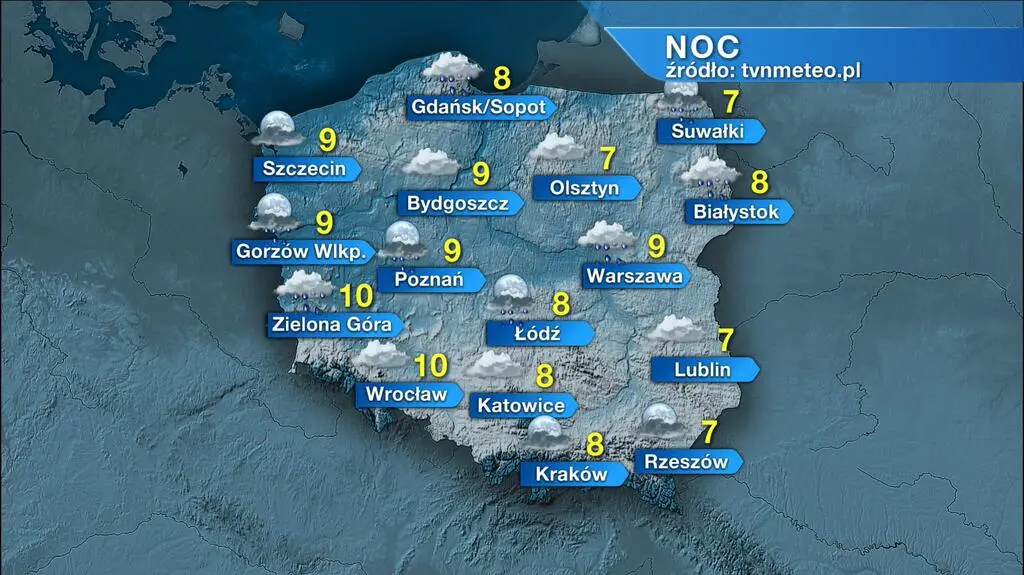 Pogoda na noc - Gdańsk, Gdynia, Sopot