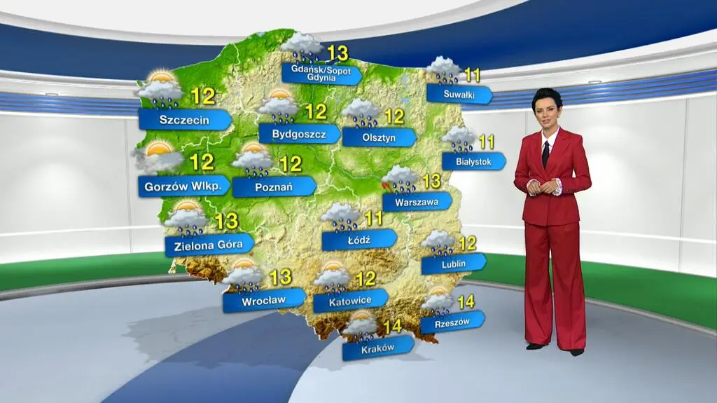 Piątek w Warszawie zapowiada się pochmurnie, okresami pojawi się słaby deszcz. Termometry wskażą maksymalnie 13 st. C. Południowo-zachodni wiatr okaże się słaby i umiarkowany. Ciśnienie lekko spada, w południe sięgnie 1003 hPa.