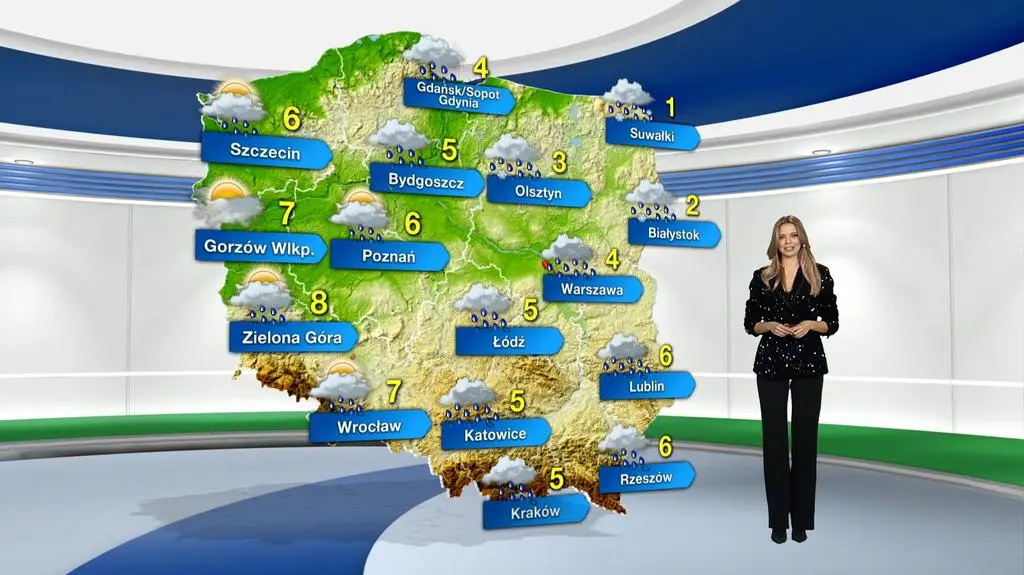 W nocy będzie pochmurno ze słabymi opadami deszczu rzędu 2-5 litrów na metr kwadratowy w zachodniej połowie Polski. Na północnym wschodzie kraju możliwe są słabe opady deszczu ze śniegiem powodujące lokalne oblodzenie. Temperatura maksymalna wyniesie od -1 i 0 stopni Celsjusza na Suwalszczyźnie do 4-5 st. C na Podkarpaciu. Wiatr będzie słaby i umiarkowany, w większości kraju południowo-wschodni, tylko w zachodnich regionach powieje z kierunku południowo-zachodniego.