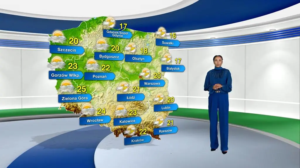 Dzień zapowiada się z małym i umiarkowanym zachmurzeniem, które od zachodu będzie wzrastać do dużego. Na termometrach zobaczymy maksymalnie do 16 st. C na Suwalszczyźnie, przez 21 st. C w centrum kraju, do 25 st. C na Ziemi Lubuskiej. Słaby i umiarkowany wiatr powieje z kierunku północno-zachodniego, na zachodzie skręcając na południowy.