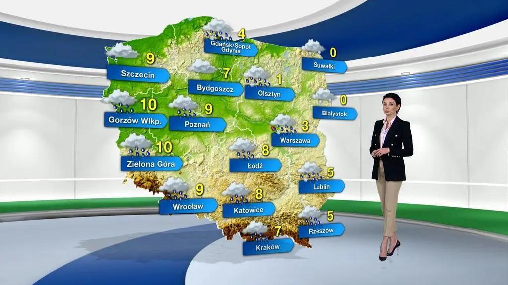 Dzień również przyniesie pochmurną aurę. W większości kraju będzie padać deszcz i deszcz ze śniegiem, a w północno-wschodniej Polsce wystąpią opady śniegu.