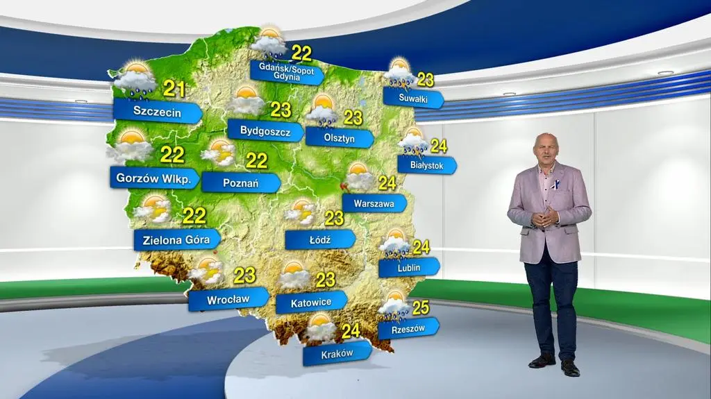 Termometry pokażą maksymalnie od 21 st. C w Szczecinie do 25 st. C w Rzeszowie. Powieje umiarkowany, na wybrzeżu w porywach dość silny, północno-zachodni wiatr.