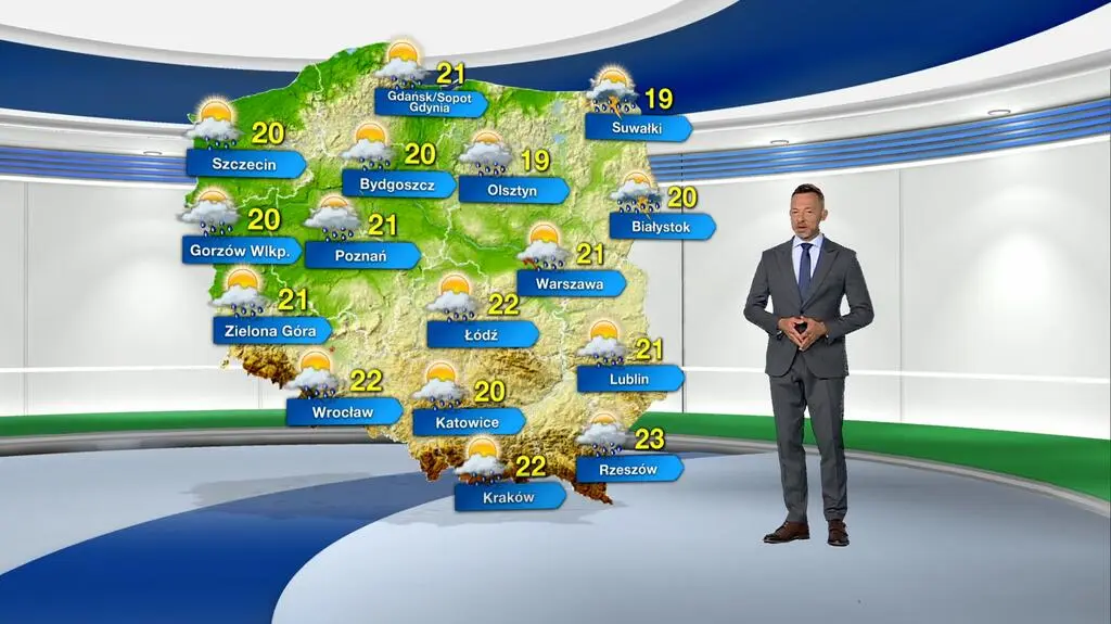 W sobotę prognozowane jest umiarkowane i duże zachmurzenie z przelotnymi opadami deszczu do 5-10 l/mkw. Na północnym wschodzie mogą wystąpić burze. Termometry pokażą od 19 st. C na Suwalszczyźnie i Warmii, przez 22 st. C w centrum kraju, do 23 st. C na Podkarpaciu. Wiatr będzie północno-zachodni, słaby i umiarkowany, okresami dość silny, w burzach silny do 80 kilometrów na godzinę.