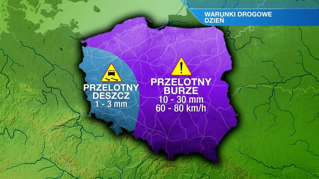 W nocy wystąpi zmienne zachmurzenie z przelotnymi opadami deszczu i burzami. Podczas wyładowań spadnie do 10-30 litrów wody na metr kwadratowy, a porywy wiatru osiągną prędkość do 60-80 kilometrów na godzinę. Temperatura minimalna wyniesie od 16 stopni Celsjusza w rejonie Zatoki Gdańskiej do 22 st. C na Podkarpaciu. Powieje słaby i umiarkowany wiatr ze zmieniających się kierunków. W strefie brzegowej okresami okaże się silniejszy, wschodni.