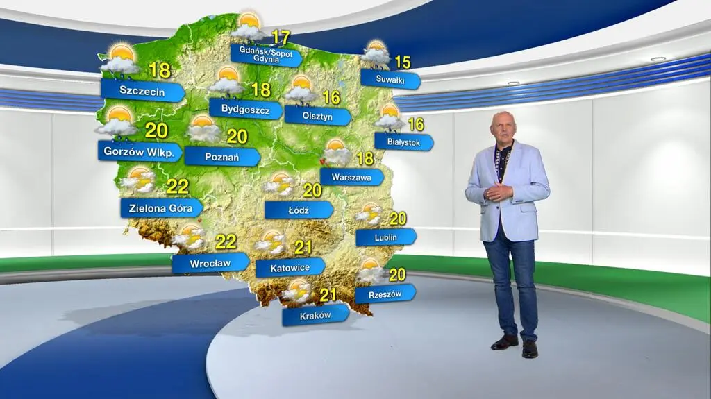 Pogoda na sobotę, 14.05, przyniesie zachmurzenie małe i umiarkowane, na północy kraju wzrastające do dużego z przelotnymi opadami deszczu do trzech litrów wody na metr kwadratowy. Na termometrach zobaczymy od 15 st. C na Suwalszczyźnie, przez 20 st. C w centrum kraju, do 22 st. C na Dolnym Śląsku i Ziemi Lubuskiej. Wiatr będzie północno-zachodni, umiarkowany i dość silny, w porywach w głębi kraju osiągnie do 60 kilometrów na godzinę, a na północy do 70 km/h.