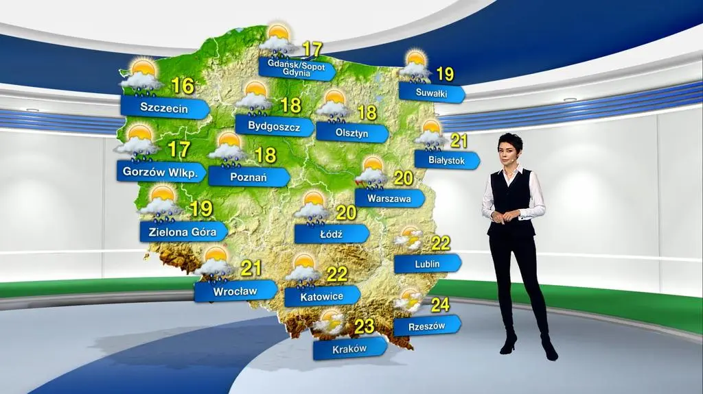 Termometry pokażą maksymalnie 16 st. C na Nizinie Szczecińskiej do 24 st. C w rejonie Podkarpacia. Wiatr wiejący z kierunku zachodniego, będzie na ogół słaby i umiarkowany, okresami silniejszy, w strefie brzegowej w porywach może przekraczać prędkość 70 km/h.