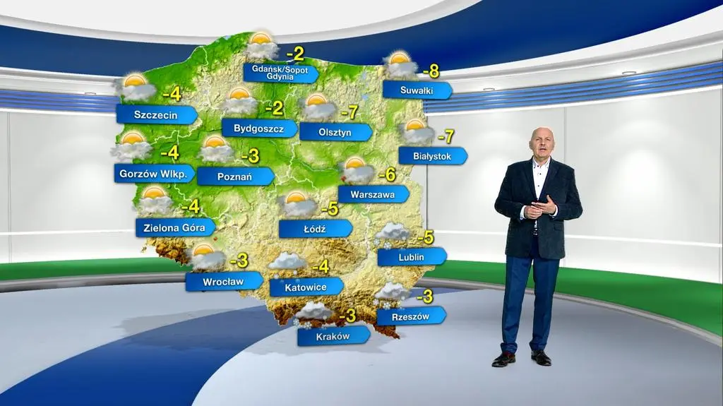 Pochmurny, śnieżny niż znad Bałkanów odsunie się nad wschodnią część Europy, a na zachodzie kraju zaznaczy się wpływ rozległego wyżu znad Niemiec, którego centrum w kolejnych dniach przesunie się nad Polskę. Do naszego kraju napływać będzie chłodne, powietrze pochodzenia arktycznego i jedynie nad południowo-wschodnią część Polski docierać będzie początkowo cieplejsze powietrze polarno-morskie. Wspomniany niż jeszcze w ciągu nocy oraz kolejnej doby przyniesie słabe opady śniegu z przerwami na południu i wschodzie Polski, natomiast na zachodzie pojawią się rozpogodzenia. Nadchodząca noc będzie umiarkowanie mroźna, jednakże miejscami, przy nocnych rozpogodzeniach, mróz będzie kilkunastostopniowy.