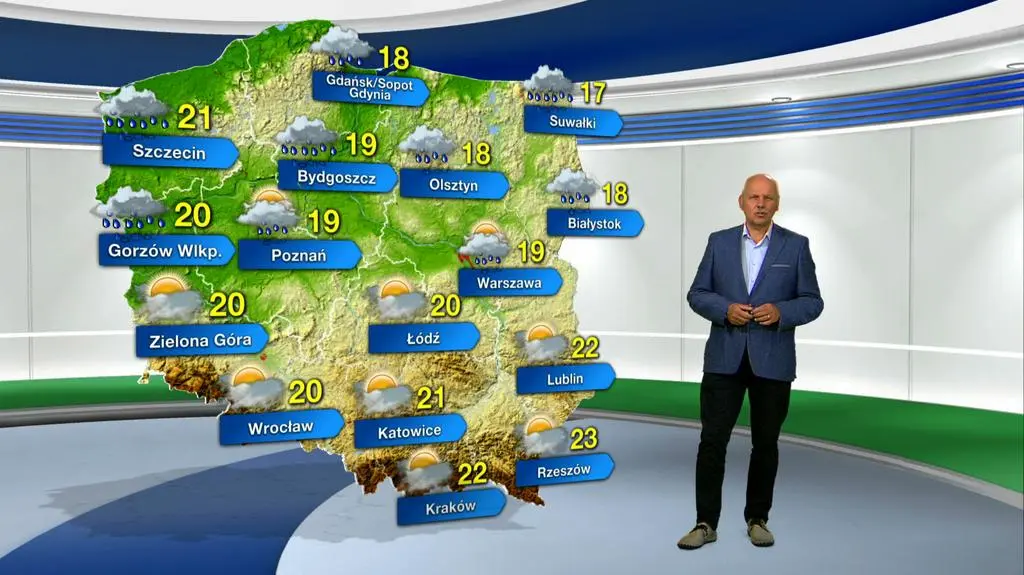 Sobota 25.09 będzie na ogół pochmurna. W północnej części kraju może spaść deszcz. Na termometrach zobaczymy od 17 st. C na Podlasiu do 23 st. C na Podkarpaciu. Wiatr będzie słaby i umiarkowany, przed południem miejscami stanie się silniejszy, powieje z zachodu.
