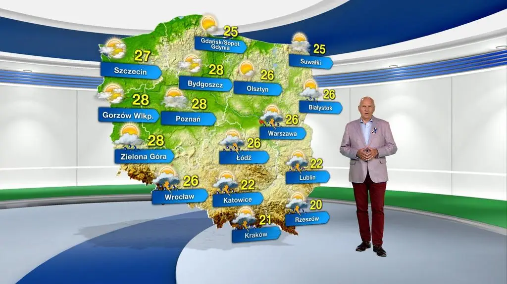 Na termometrach zobaczymy maksymalnie od 20 st. C na Podkarpaciu, przez 26 st. C w środkowych regionach, do 28 st. C na Ziemi Lubuskiej, Kujawach i w Wielkopolsce. Wiatr z kierunku wschodniego powieje słabo i umiarkowanie, w burzach silnie, w porywach osiągając prędkość do 70-90 kilometrów na godzinę.