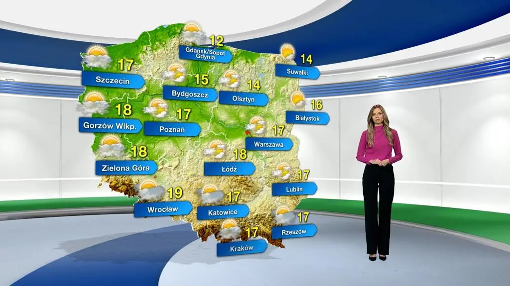 Dzień również przyniesie pogodną aurę. Tylko chwilami niebo bardziej się zachmurzy. Na termometrach zobaczymy maksymalnie od 12 st. C w rejonie Zatoki Gdańskiej, przez 17-18 st. C w środkowych regionach, do 19 st. C na Dolnym Śląsku. Wiatr z kierunku północno-wschodniego powieje słabo i umiarkowanie.