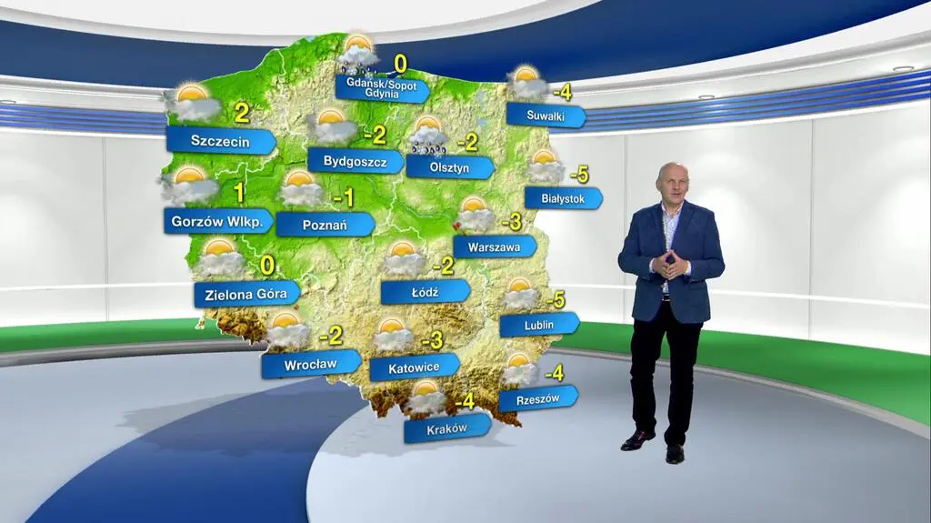 Środa przyniesie pochmurną aurę z rozpogodzeniami. W rejonie Zatoki Gdańskiej i na Warmii wystąpią słabe opady śniegu z deszczem. Termometry pokażą maksymalnie od -5 st. C na Podlasiu i Lubelszczyźnie, przez -2 st. C w centrum kraju, do 2 st. C na Pomorzu Zachodnim. Północno-zachodni i zachodni wiatr będzie słaby i umiarkowany.