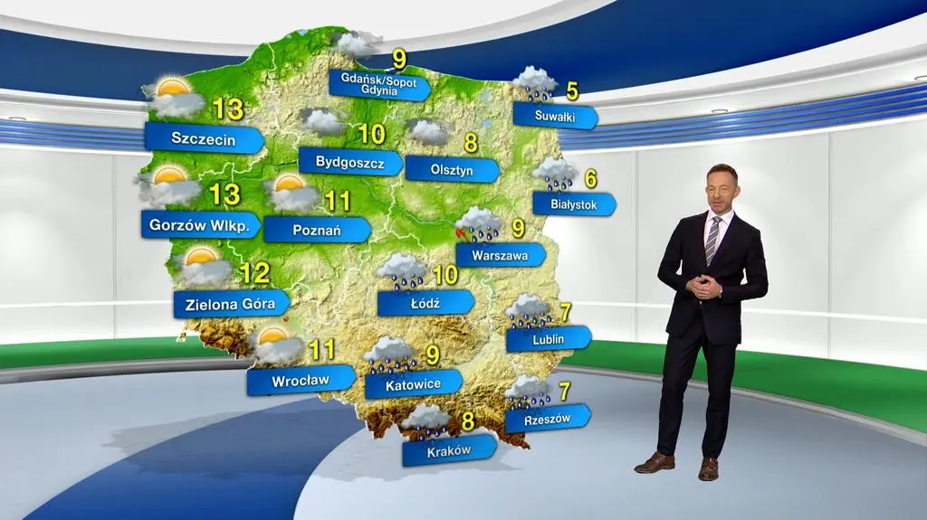 Środa w Warszawie również przyniesie pochmurną aurę ze słabymi opadami deszczu lub mżawki. Na termometrach zobaczymy maksymalnie 9 st. C. Powieje wschodni, słaby i umiarkowany wiatr. Ciśnienie w południe wzrośnie do 1005 hPa.
