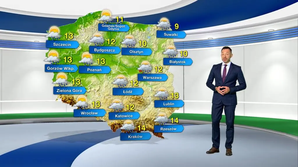 W nocy będzie pochmurno z przejaśnieniami i przemieszczającymi się od północnego zachodu w głąb Polski opadami deszczu rzędu 5-10 litrów wody na metr kwadratowy. Temperatura maksymalna wyniesie od 6 stopni Celsjusza na Suwalszczyźnie, przez 8 st. C w centrum kraju, do 11 st. C a Podkarpaciu. Wiatr będzie zachodni i północno-zachodni, słaby i umiarkowany, okresami dość silny, w porywach na wschodzie kraju osiągając do 50 kilometrów na godzinę.