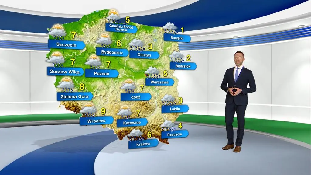 Dzień zapowiada się pochmurno, ale możliwe są przejaśnienia. Wystąpią opady śniegu, które będą przechodzić w deszcz ze śniegiem i deszcz. Na termometrach zobaczymy maksymalnie od 1 st. C na Podlasiu do 9 st. C na Dolnym Śląsku. Będzie wiać zachodni słaby i umiarkowany wiatr. W porywach osiągnie prędkość do 60 km/h, choć w strefie brzegowej porywy mogą przekraczać 70 km/h.