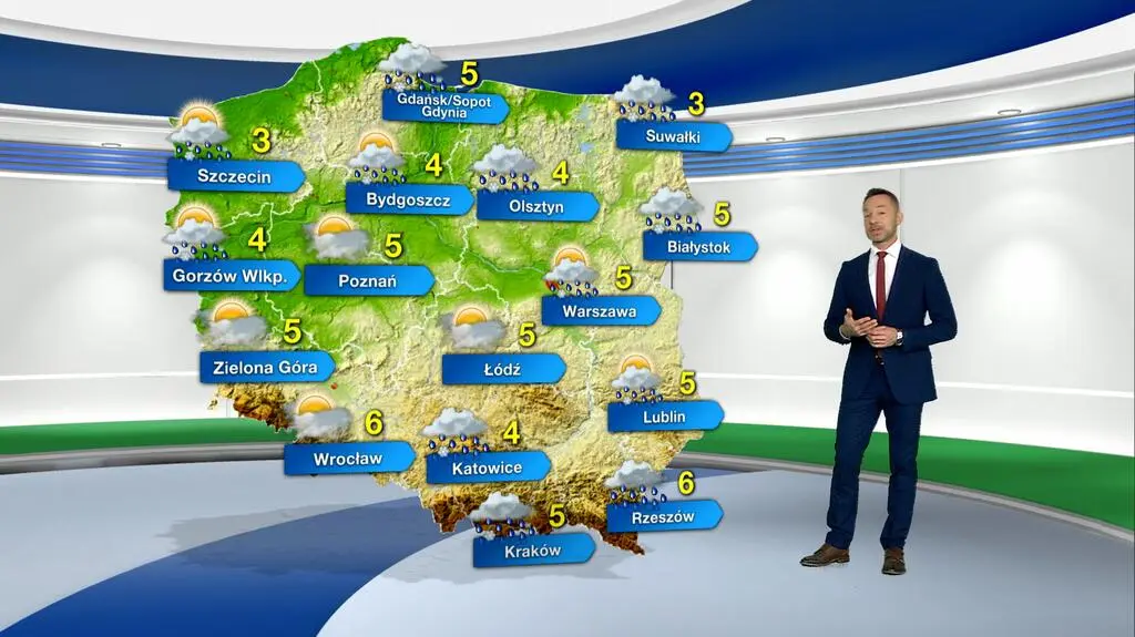 Termometry pokażą maksymalnie od 3 st. C na Suwalszczyźnie i Pomorzu Zachodnim, przez 5 st. C w centrum kraju, do 6 st. C na Dolnym Śląsku i Podkarpaciu. Powieje południowo-zachodni, słaby i umiarkowany, okresami dość silny wiatr, w porywach na północy osiągnie prędkość do 50 km/h.